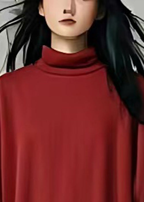 Simple Red Turtle Neck Patchwork Cotton Maxi Dress Summer