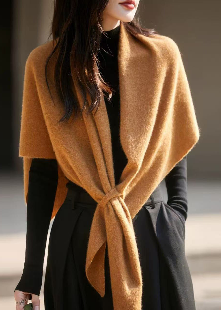 Simple Red V Neck Lace Up Woolen Cape Sweater Batwing Sleeve
