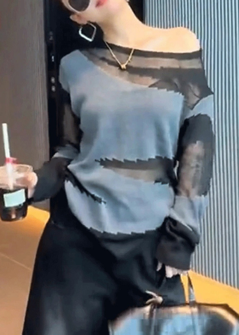 Slim Fit Grey Asymmetrical Patchwork Thin Knit Sweater Fall