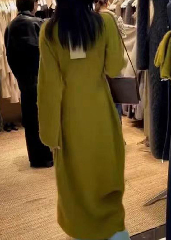 Unique Green V Neck Button Knit Long Cardigan Fall