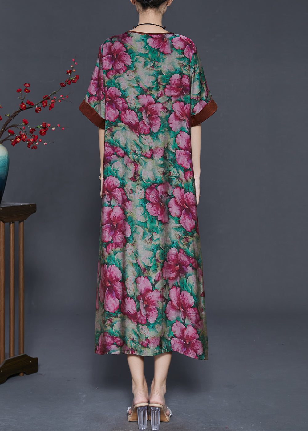 Vintage Tasseled Flower Print Linen Long Dress Summer