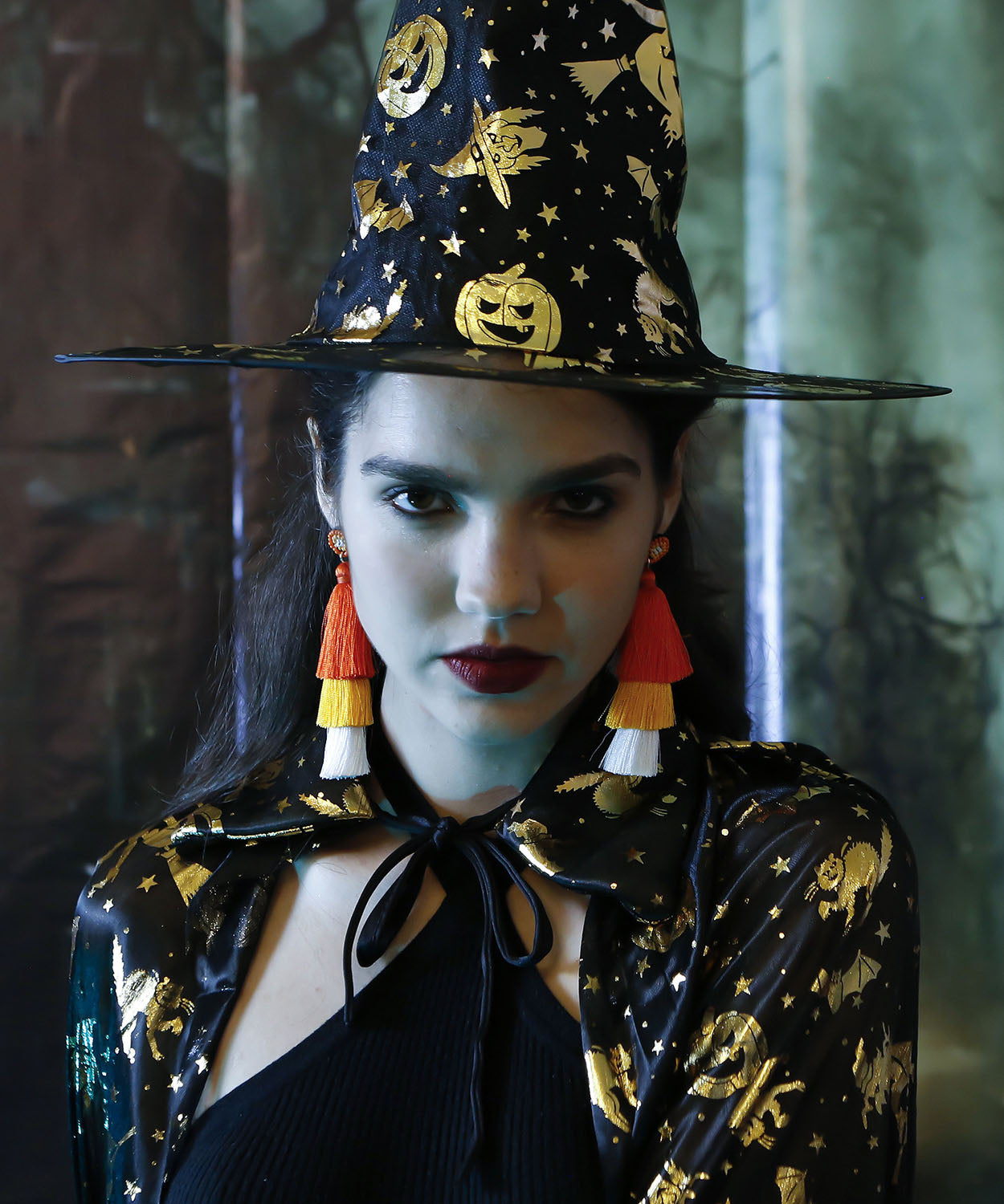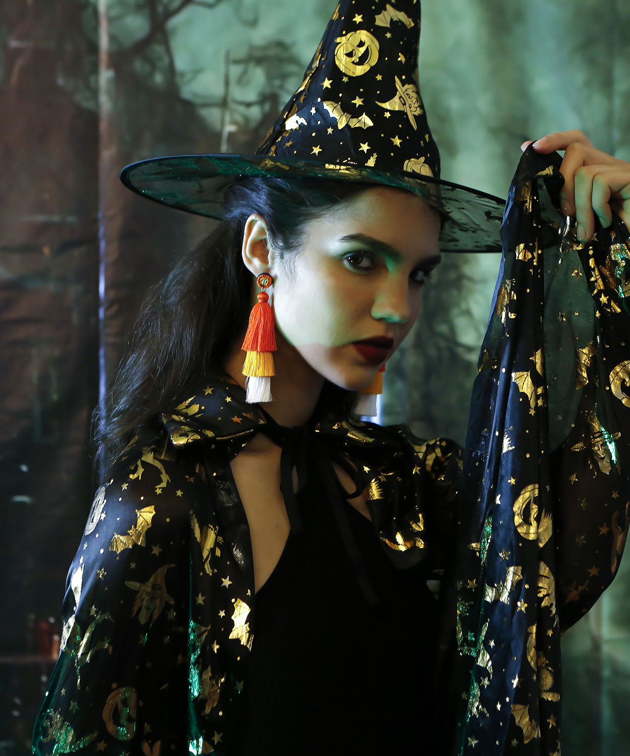 Women Black Rice Ball Silk Cotton Tassel Drop Earrings
