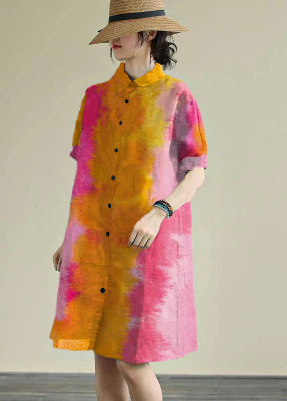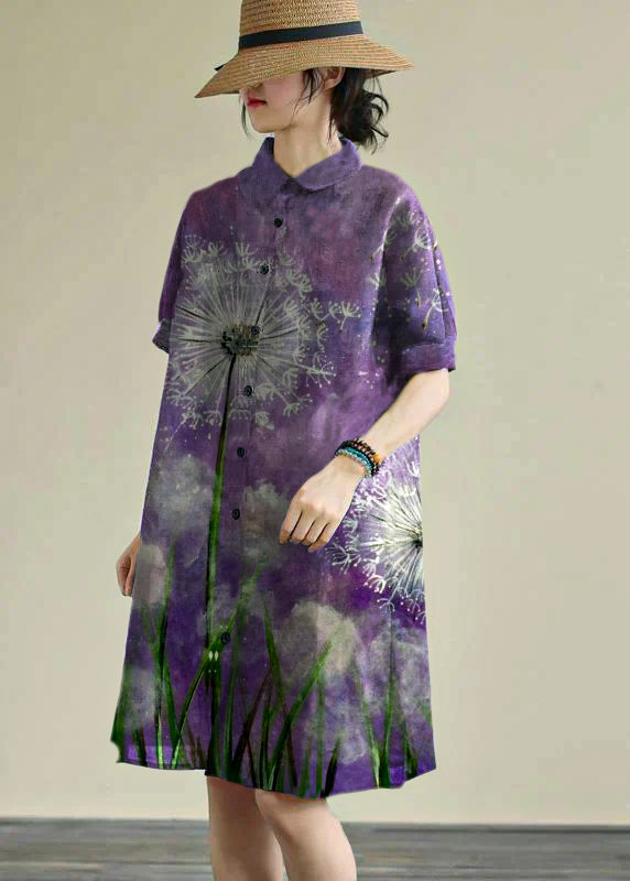 Women lapel Button Down Cotton blend summer Robes design navy striped Dresses