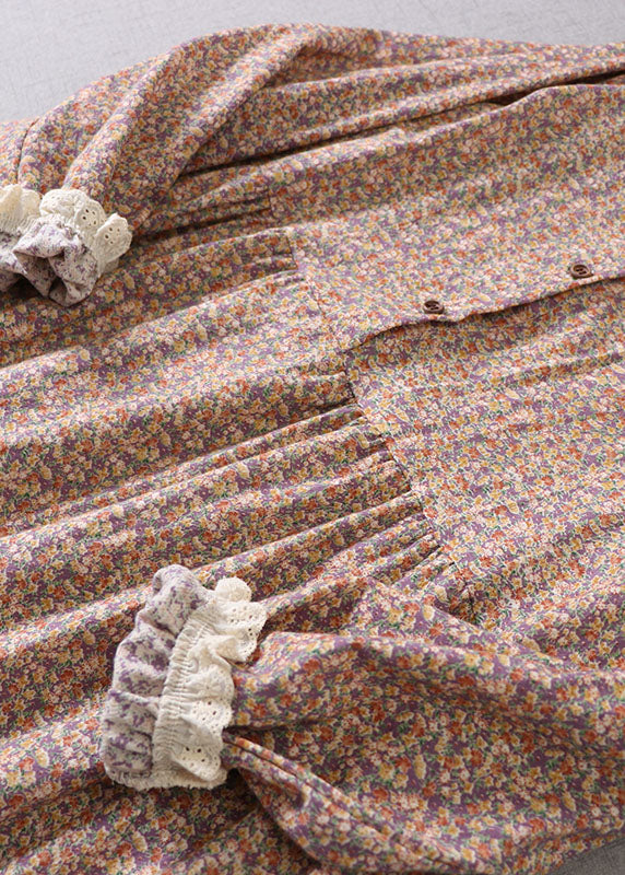 Women Purple Ruffled Print Cotton Maxi Dress Spring