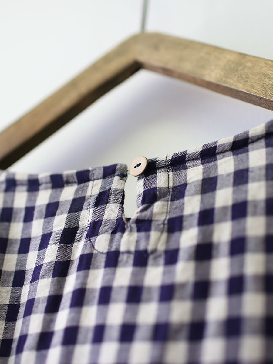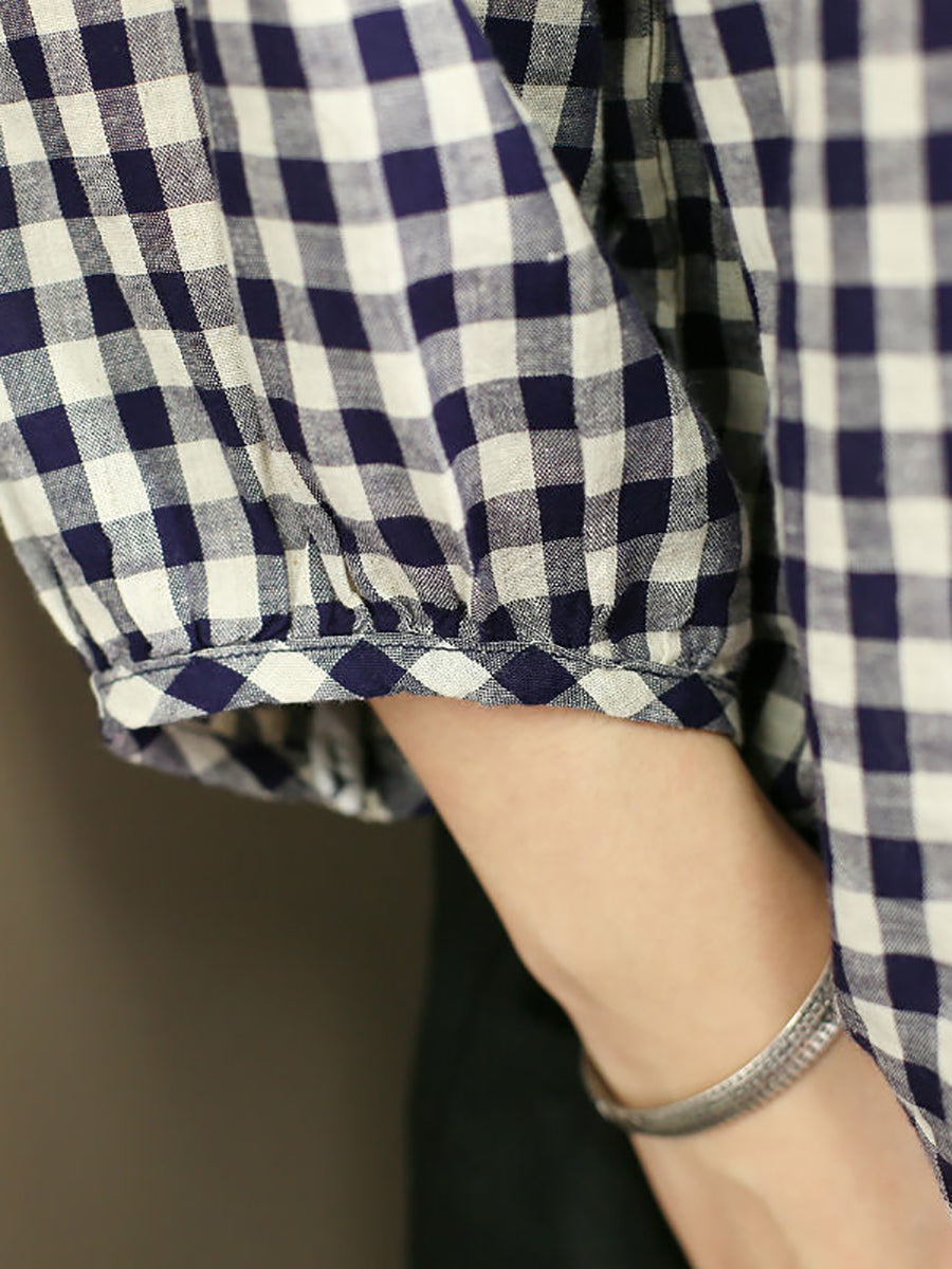 Plus Size Women Summer Vintage Plaid Loose Pullover Cotton Shirt
