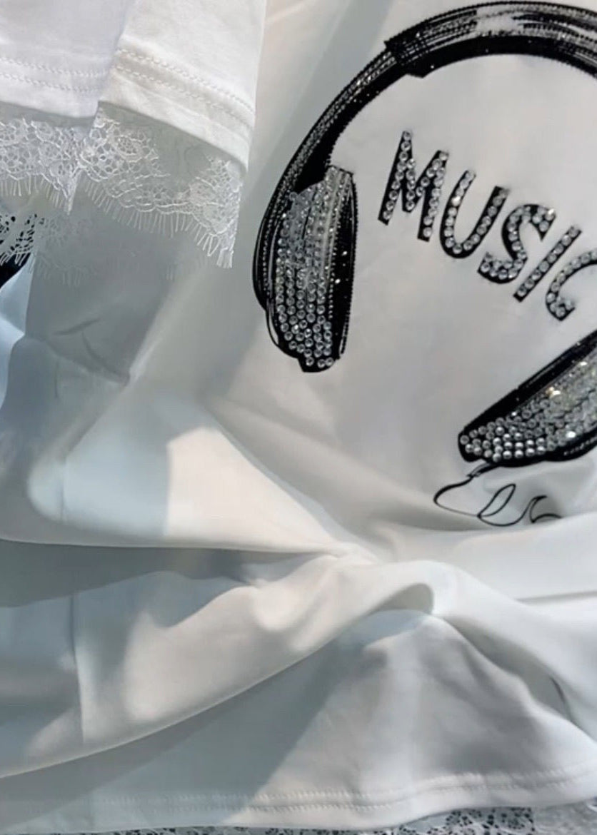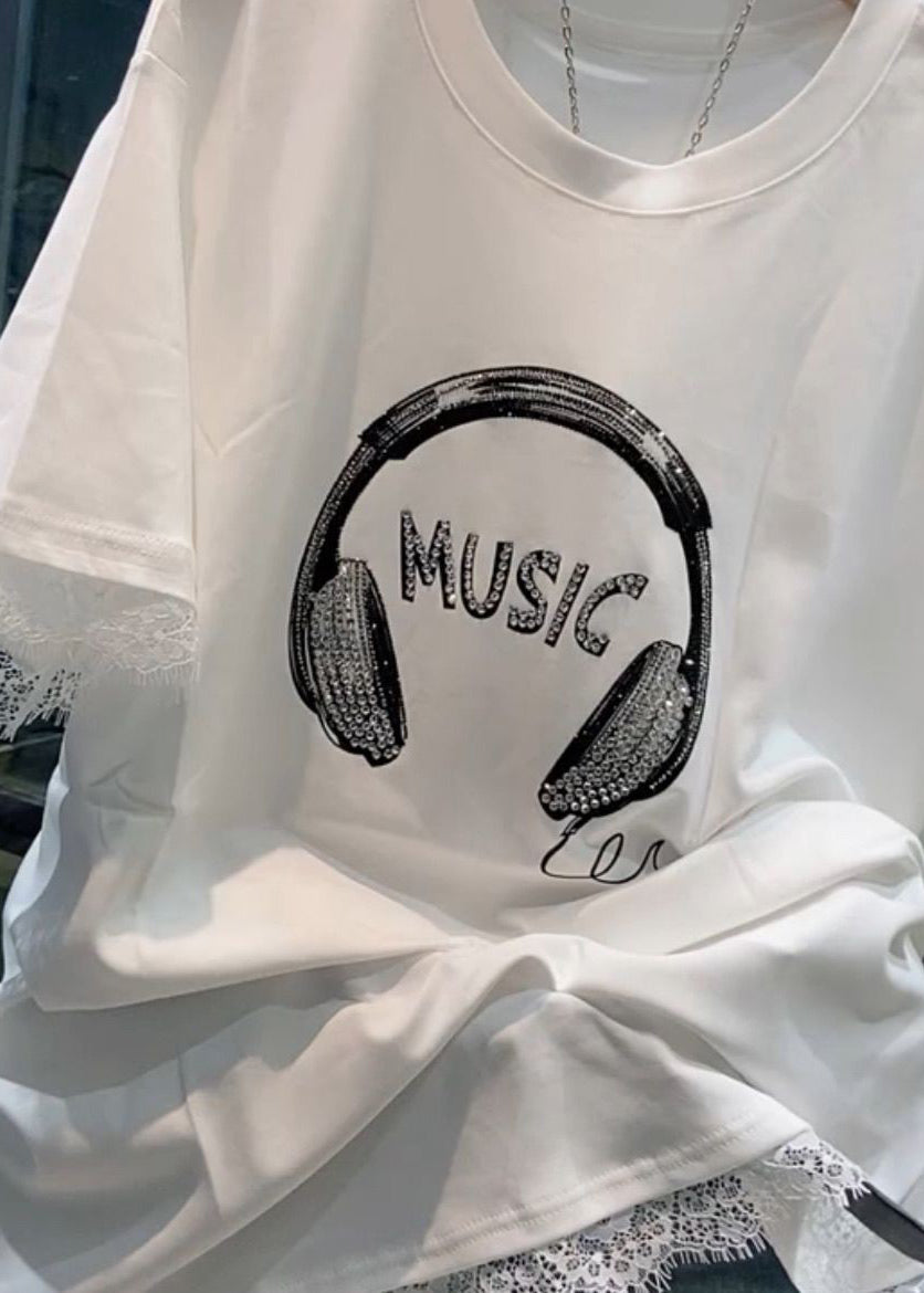 Women White O Neck Zircon Lace Patchwork T Shirt Summer
