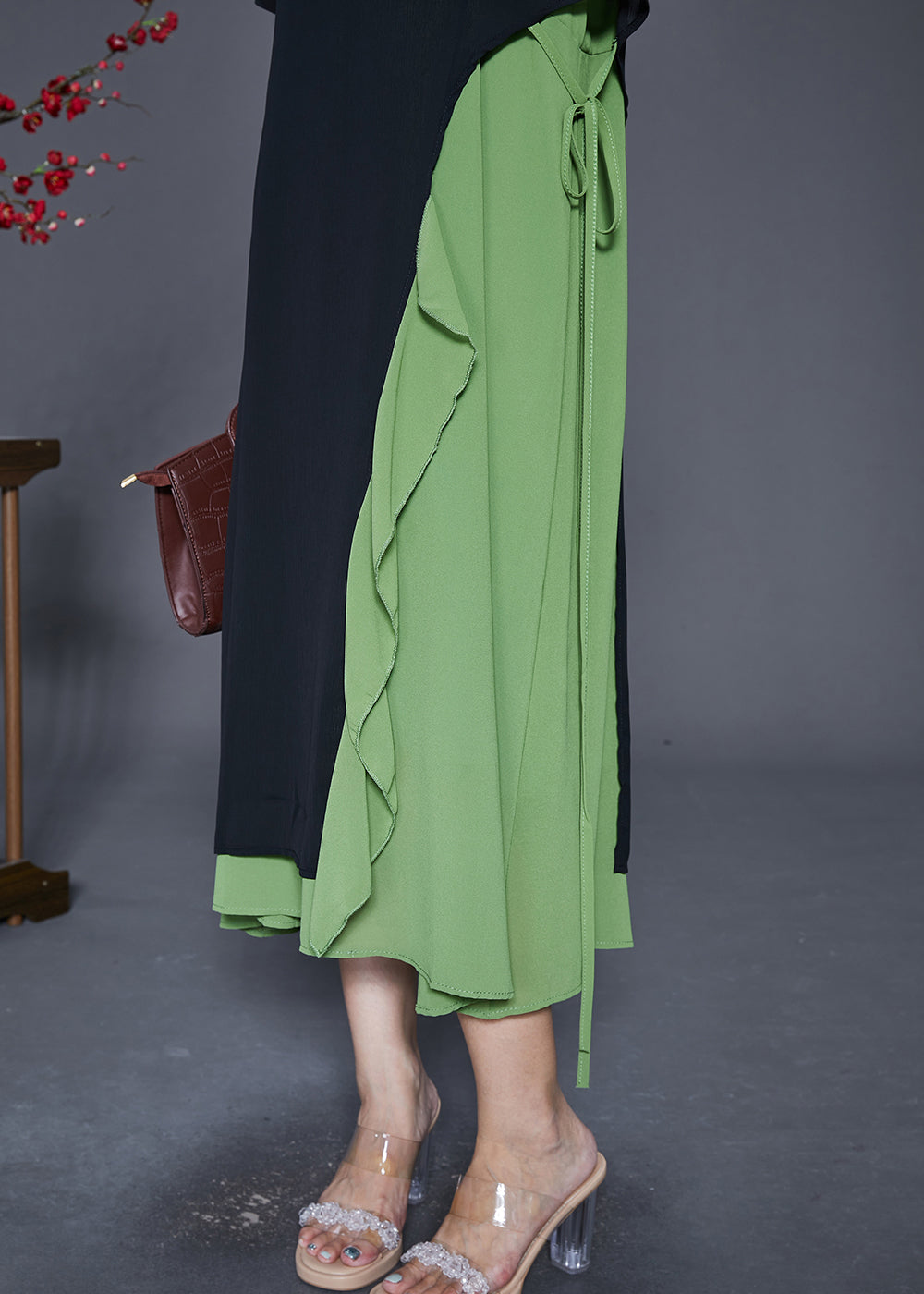 Art Black Asymmetrical Patchwork Ruffles Silk Fake Two Piece Dresses Summer