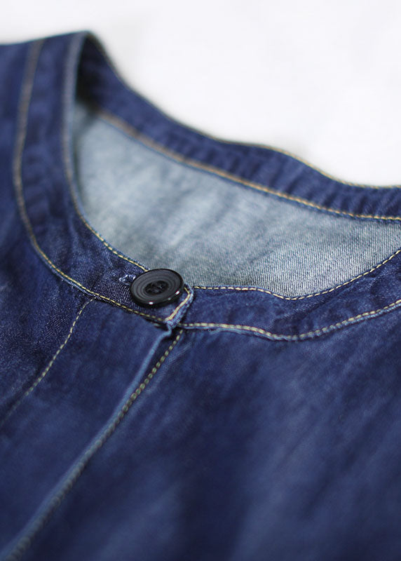 Art Denim Blue O-Neck Patchwork Cotton Shirt Dresses Lantern Sleeve