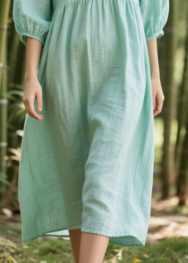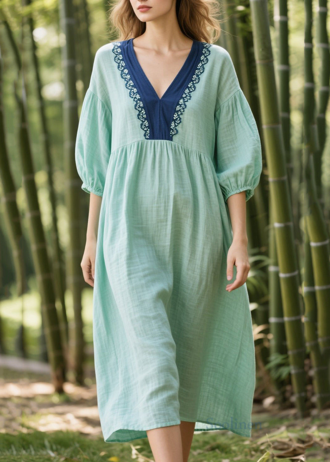 Art Green Oversized Patchwork Lace Cotton Dresses Bracelet Sleeve