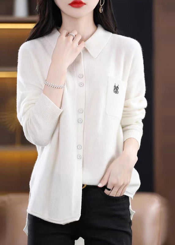 Beautiful Rose Peter Pan Collar Button Patchwork Woolen Knitted Tops Fall