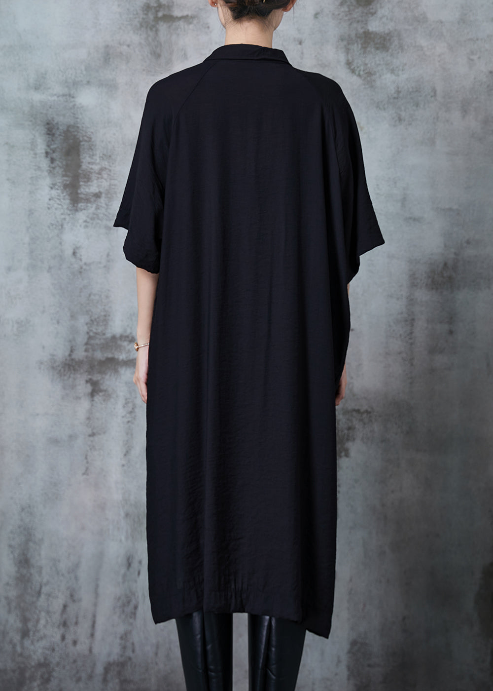 Black Big Pockets Linen Shirt Dress Oversized Summer