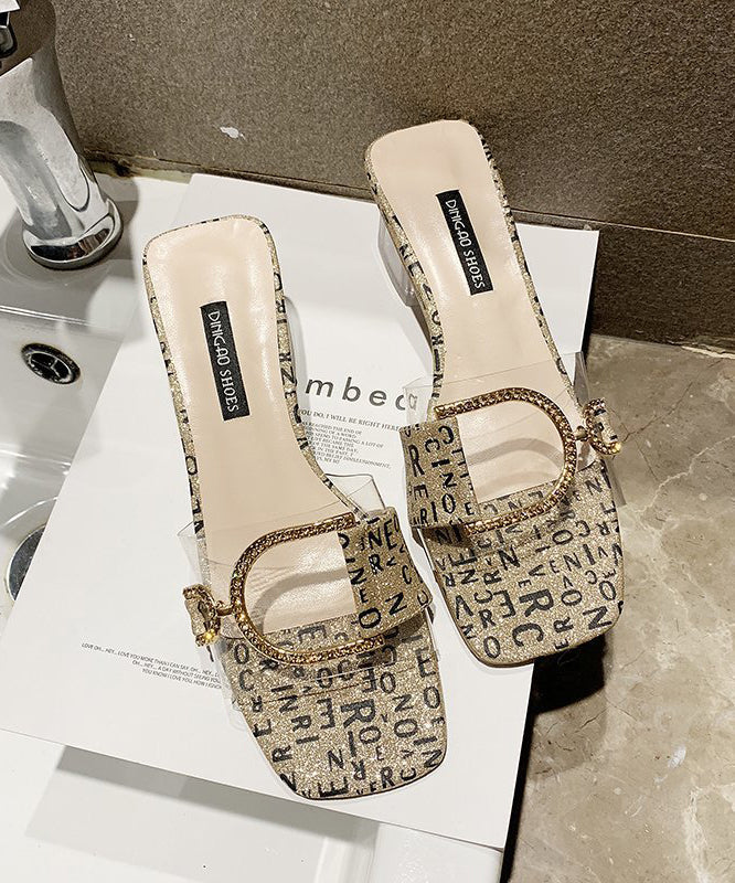 Black Chunky Heel Stylish Peep Toe Crystal Slide Sandals