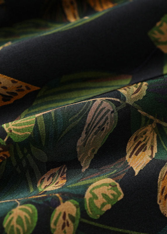 Black Print Patchwork Loose Silk Top Peter Pan Collar Summer