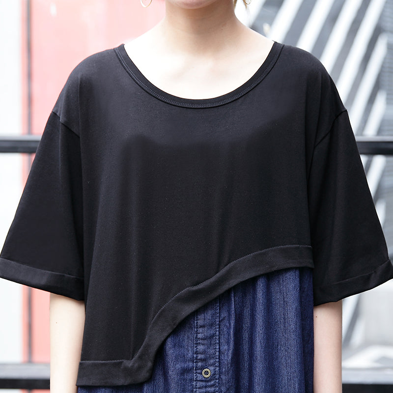 blue cotton dresses oversized patchwork cotton clothing dresses 2018 Fishtail maxi dresses