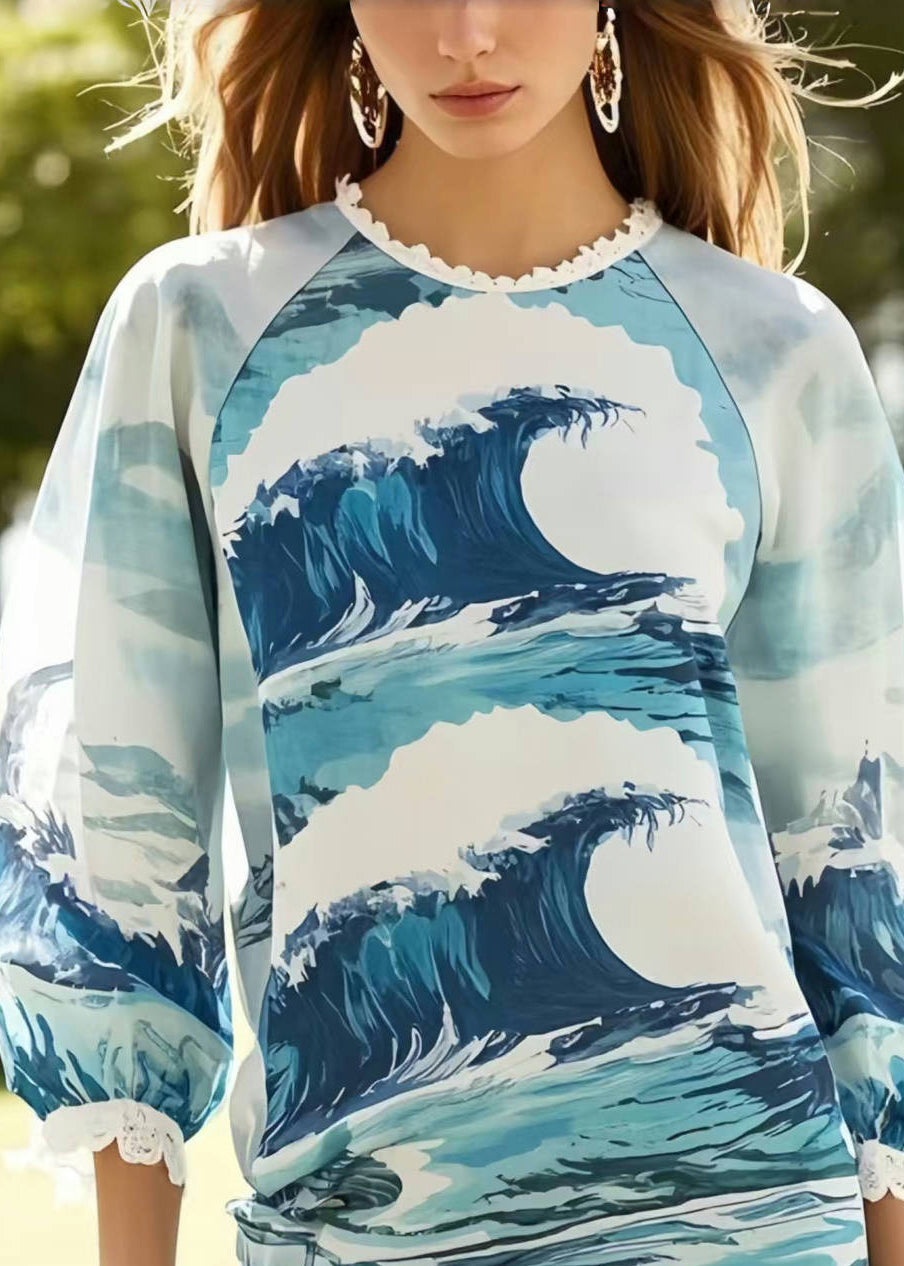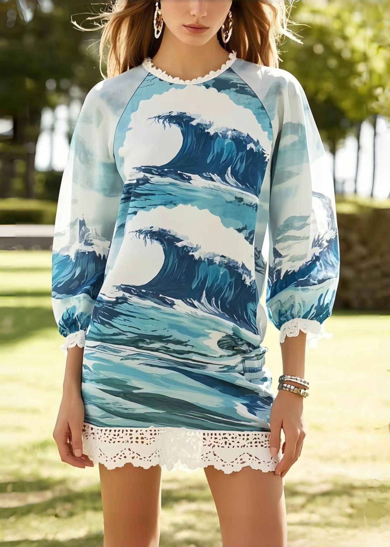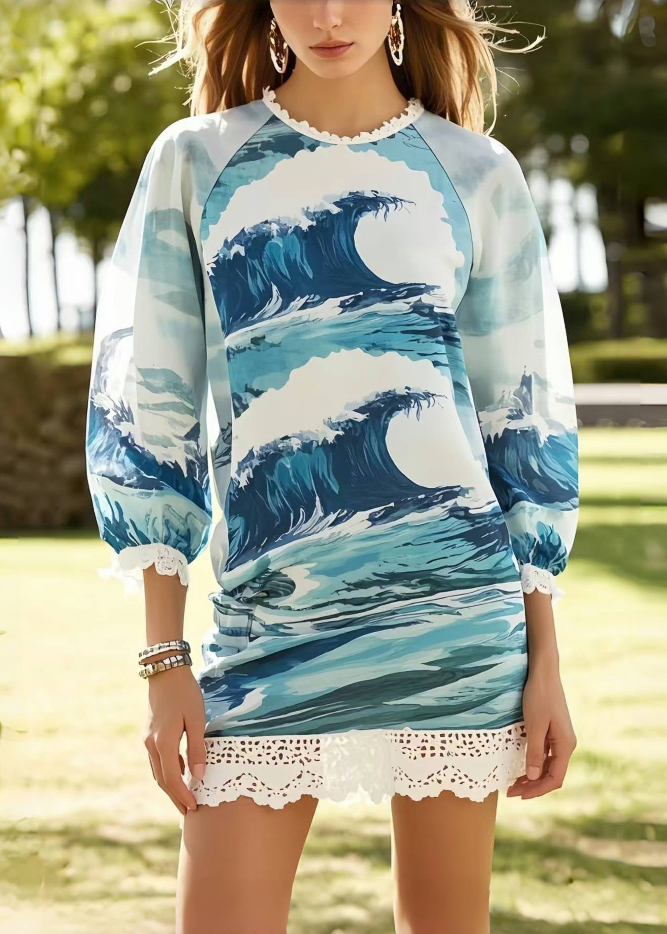 Bohemian Print Patchwork Lace Chiffon Vacation Dress Summer