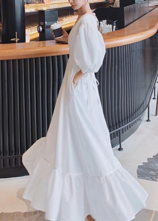 Boho Black Ruffled Lace Up Patchwork Cotton Long Dresses Summer