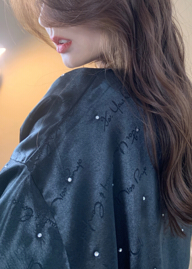 Boho Black V Neck Dot Tie Waist Ice Silk Mid Dress Long Sleeve