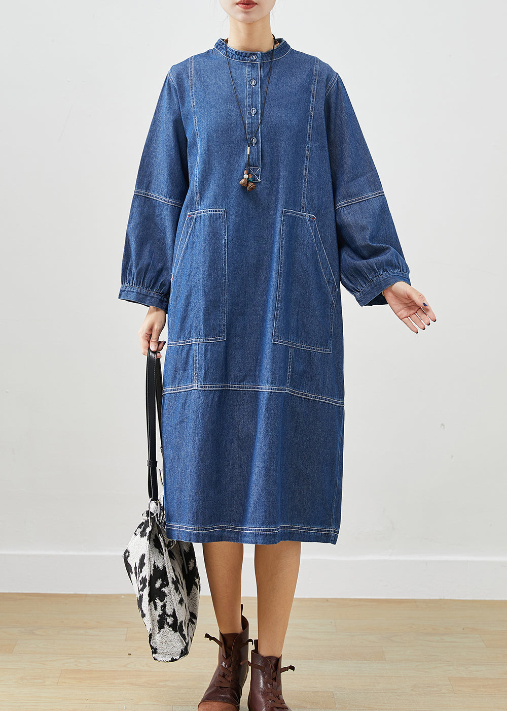 Boho Dark Blue Oversized Patchwork Cotton Vacation Dresses Fall
