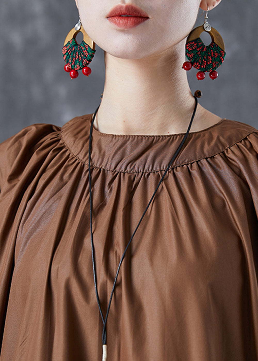Boutique Coffee Drawstring Pockets Cotton Robe Dresses Summer