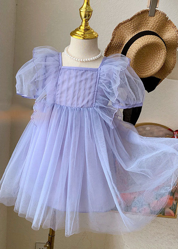 Boutique Purple Ruffled Patchwork Tulle Baby Girls Princess Dress Summer