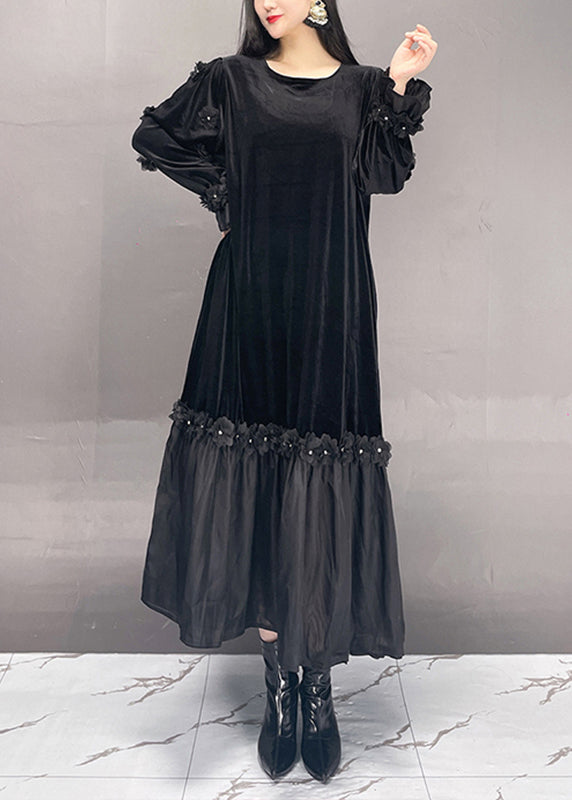 Boutique Red O-Neck Embroidered Floral Silk Velvet Long Dresses Fall