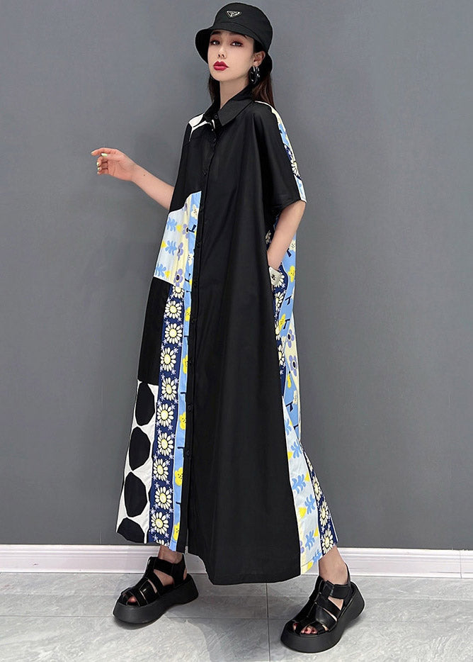 Casual Blue Peter Pan Collar Print Dresses Short Sleeve
