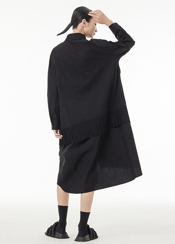 Chic Black Asymmetrical Wrinkled Cotton Robe Dresses Spring