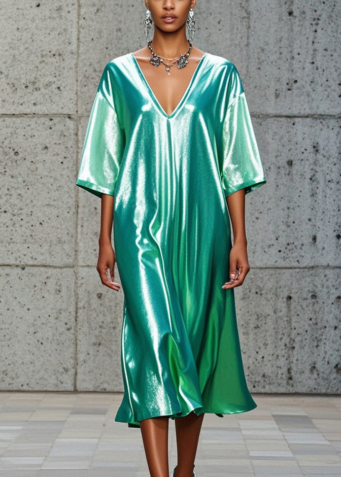 Chic Green V Neck Oversized Silk Vacation Dresses Summer