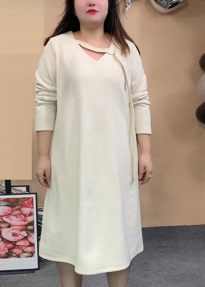 Classy Black V Neck Oversized Warm Fleece Dresses Fall