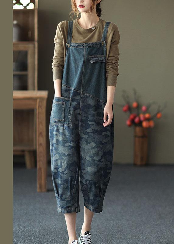 Classy Dark Blue Retro Print Cotton Body Suits Romper