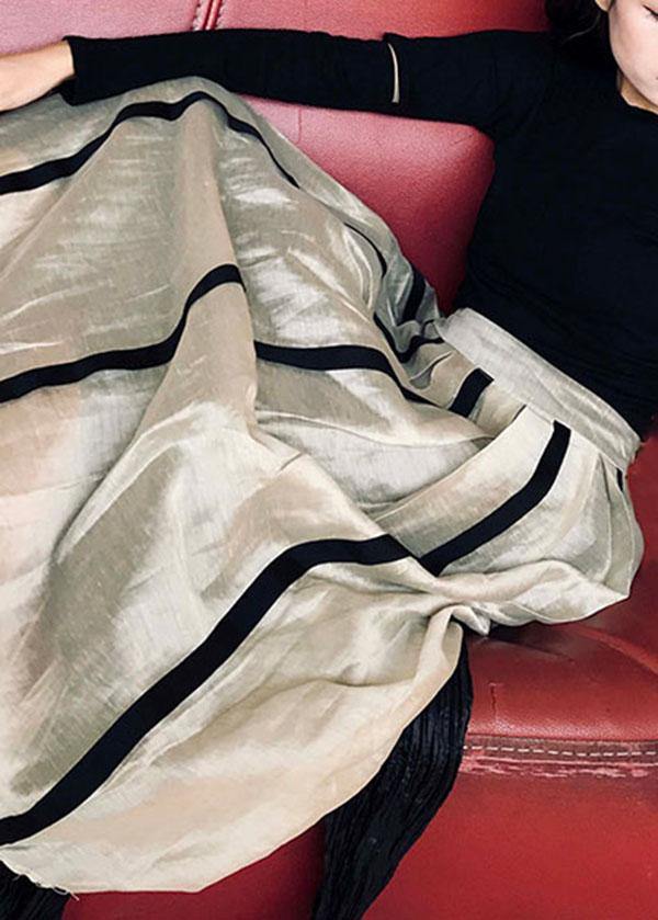 Comfy Beige Patchwork Summer Skirt Cotton Linen