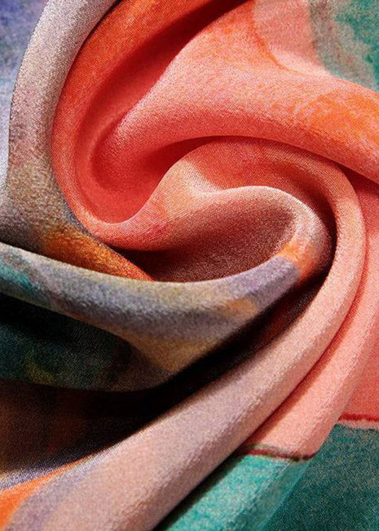 DIY O-Neck Print Wrinkled Silk Maxi Dresses Short Sleeve