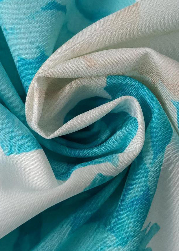 Elegant Blue V Neck Print Cotton Maxi Dresses Petal Sleeve