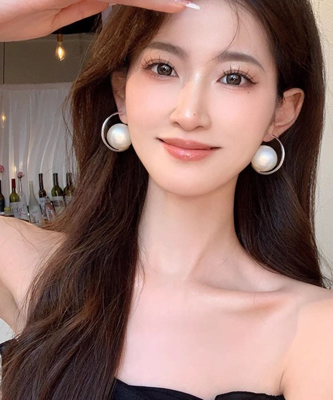 Elegant Gold Sterling Silver Alloy Pearl Hoop Earrings