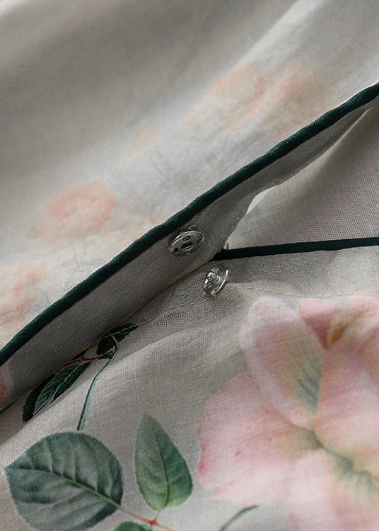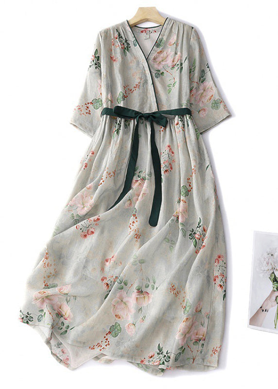 Elegant Green Button Print Lace Up Cotton Dresses Summer