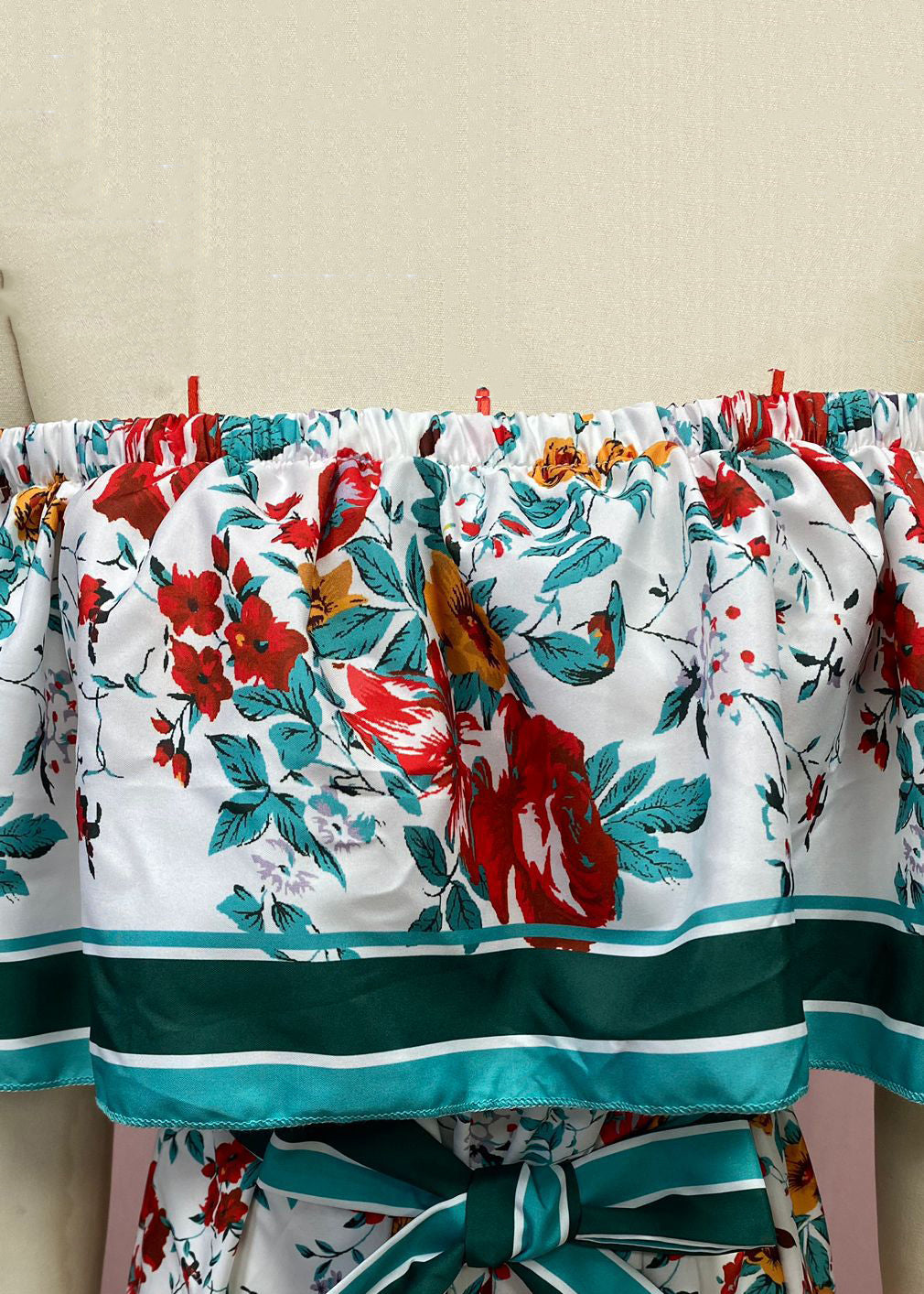 Elegant Green Slash Neck Print Cotton Long Dresses Summer