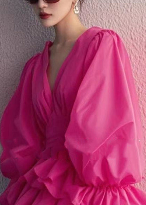 Elegant Rose V Neck Solid Cotton Mini Dress Butterfly Sleeve