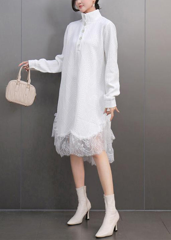 Elegant White Peter Pan Collar Lace Patchwork Long Dresses Spring