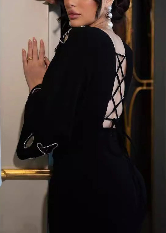 Fashion Black Hollow Out Lace Up Patchwork Cotton Dress Spring