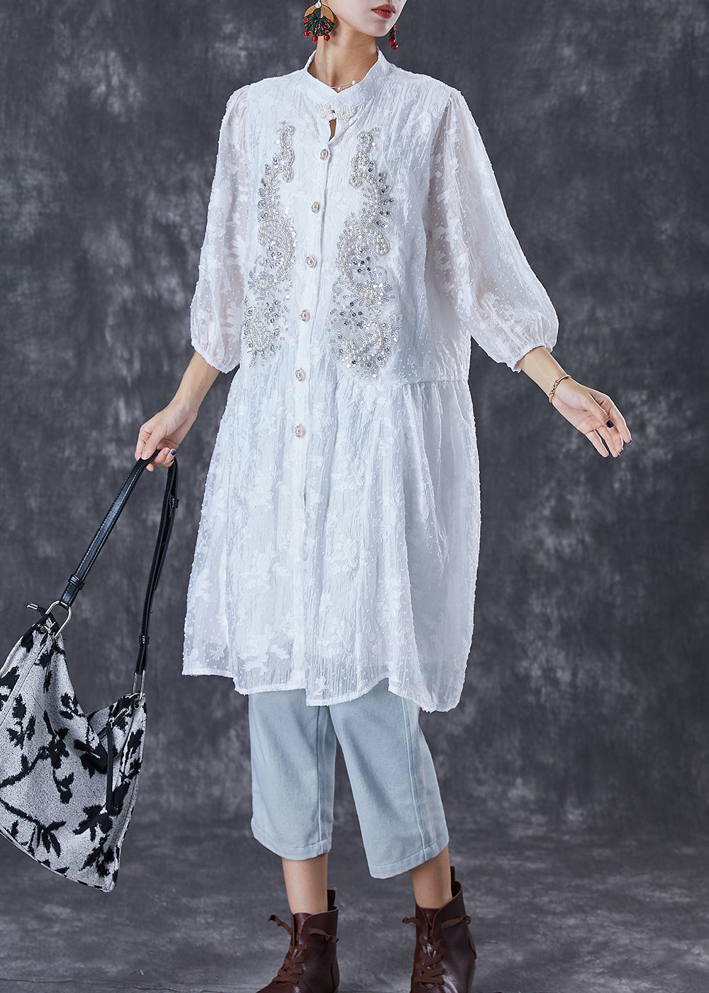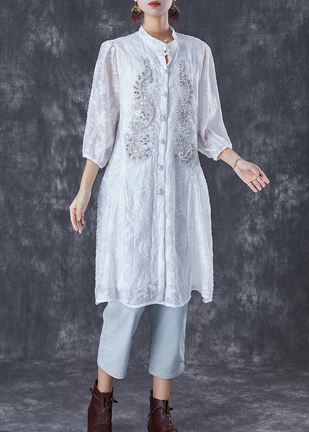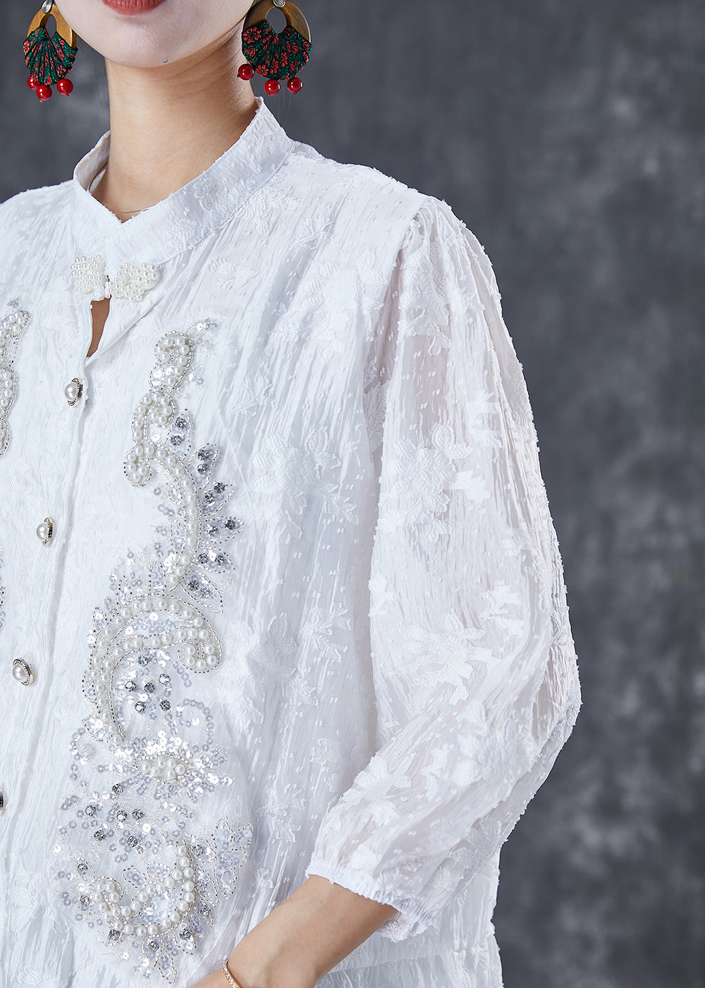Fashion White Nail Bead Jacquard Cotton Dress Bracelet Sleeve