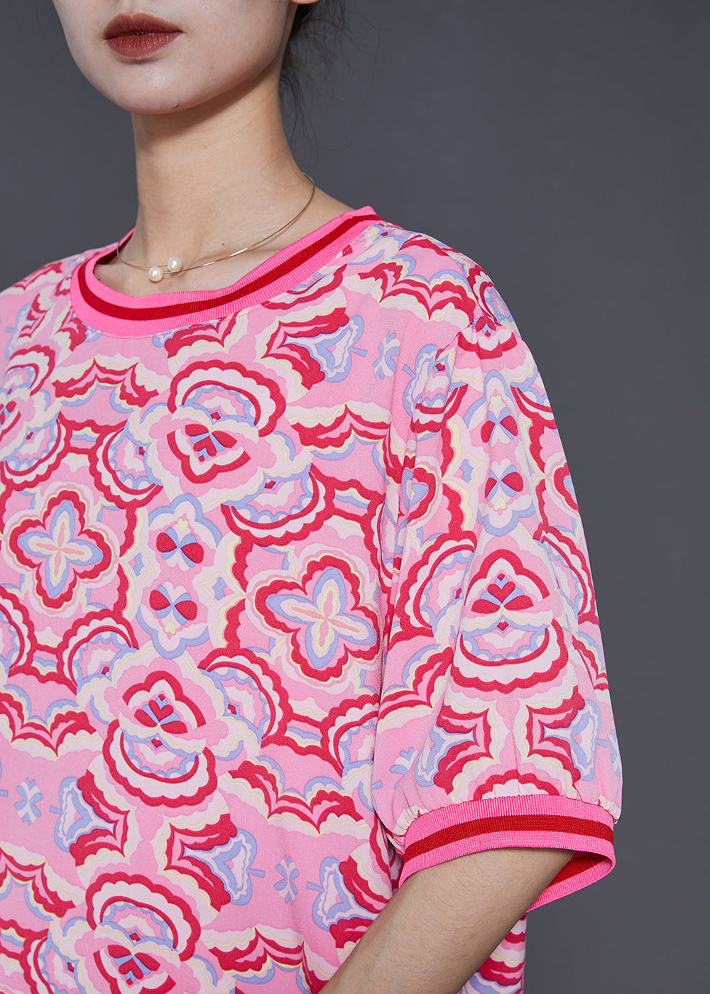 Fine Pink Print Ruffles Chiffon Long Dresses Summer