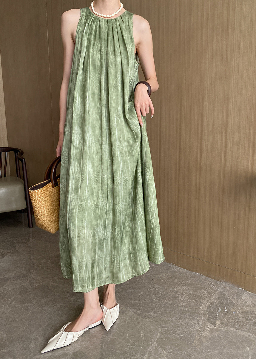 French Blue O Neck Wrinkled Cotton Holiday Dress Sleeveless