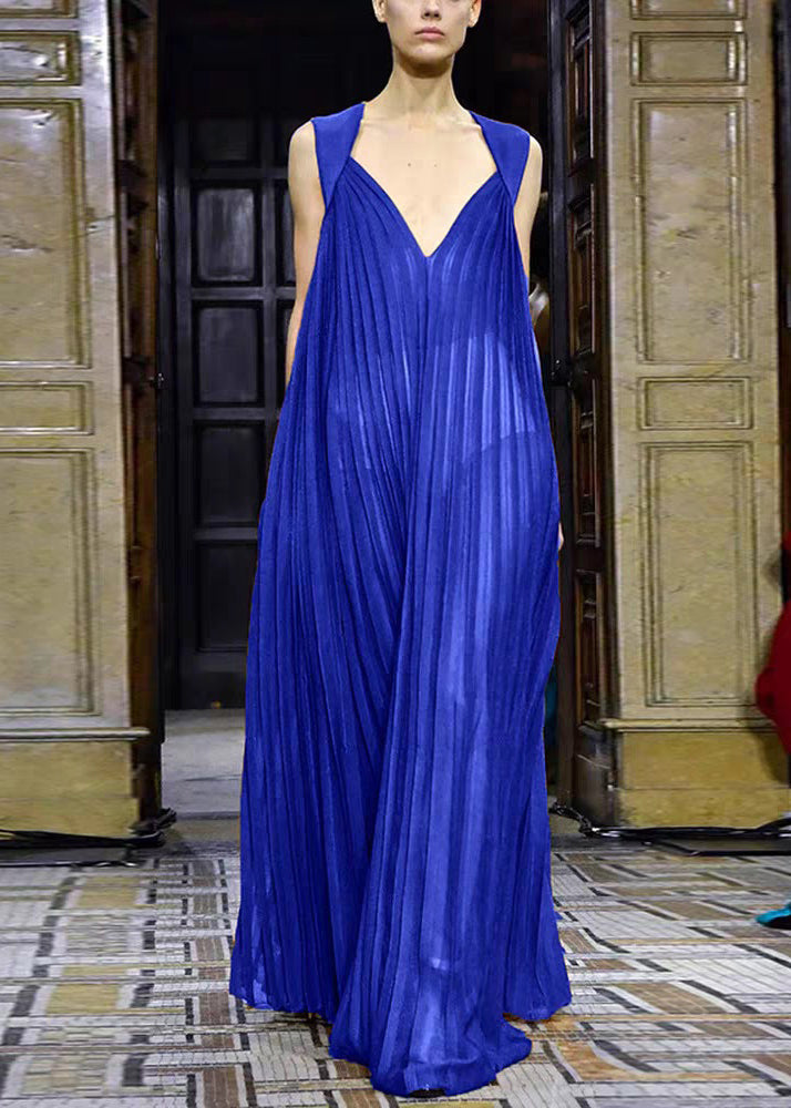 French Brown V Neck Wrinkled Chiffon Long Dresses Sleeveless