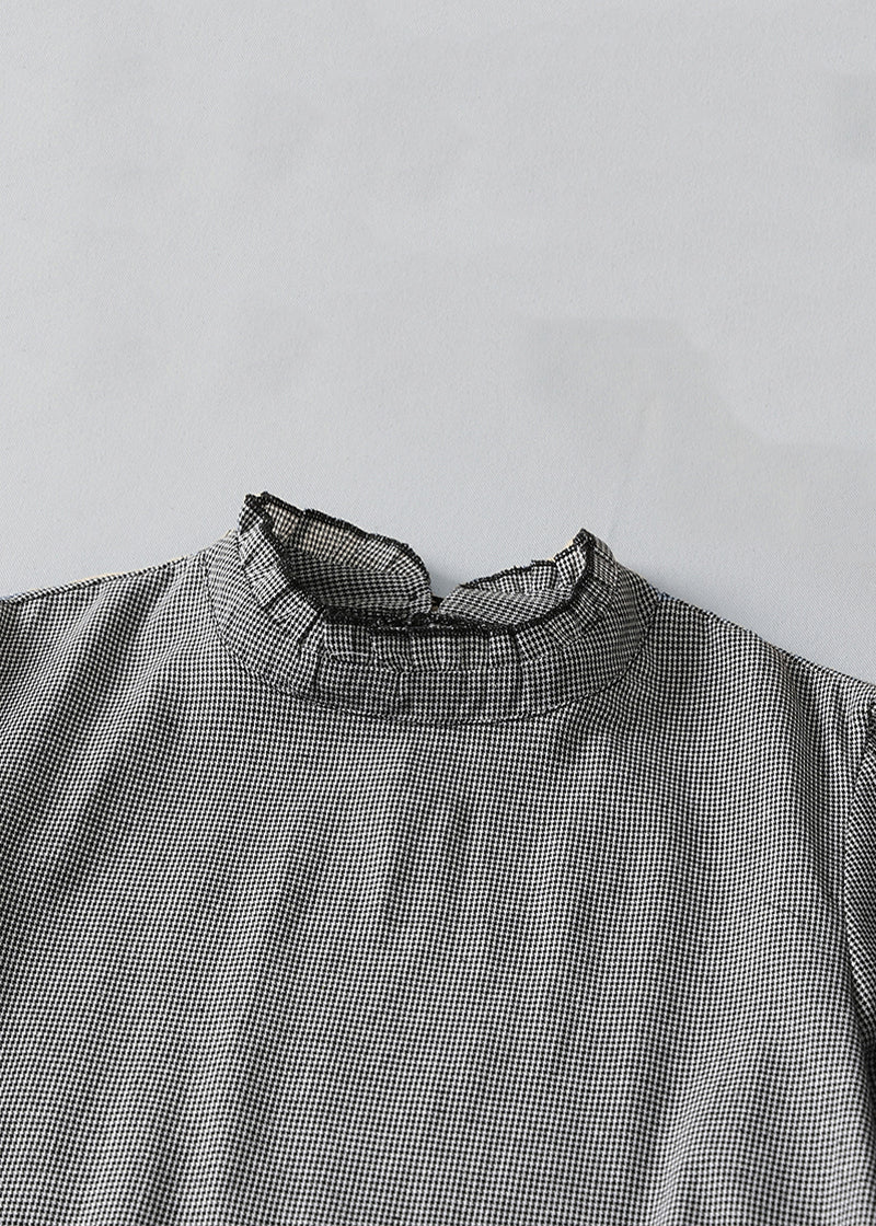 French Plaid Ruffled Pockets Cotton Dress Spring