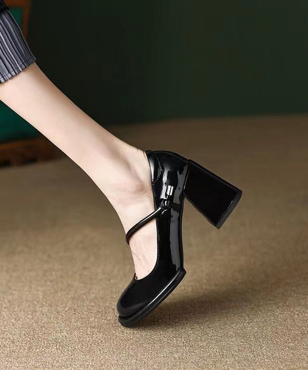 French Wine Red Sheepskin High Heels Buckle Strap