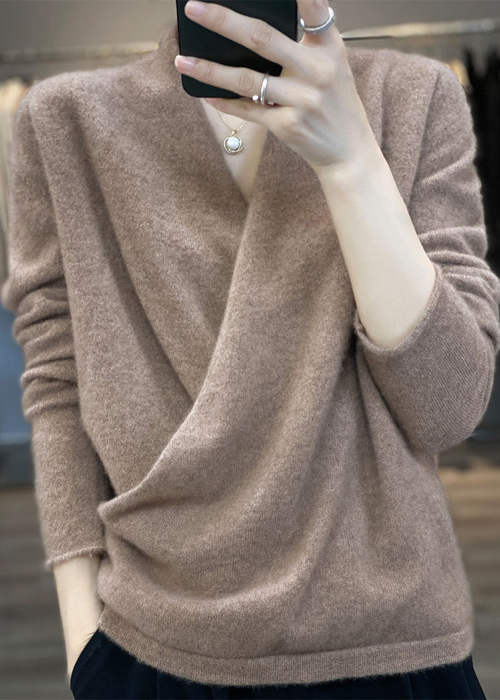 French Yellow Green V Neck Cozy Woolen Sweater Tops Spring