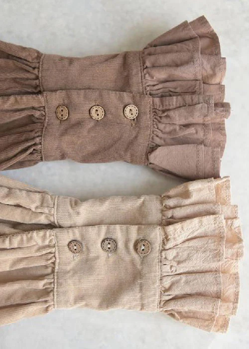 Grace Size Khaki Ruffled Button Corduroy Long Dresses Spring
