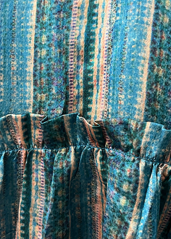 Green O-Neck Ruffled Wrinkled Silk Cotto Maxi Dress Spring