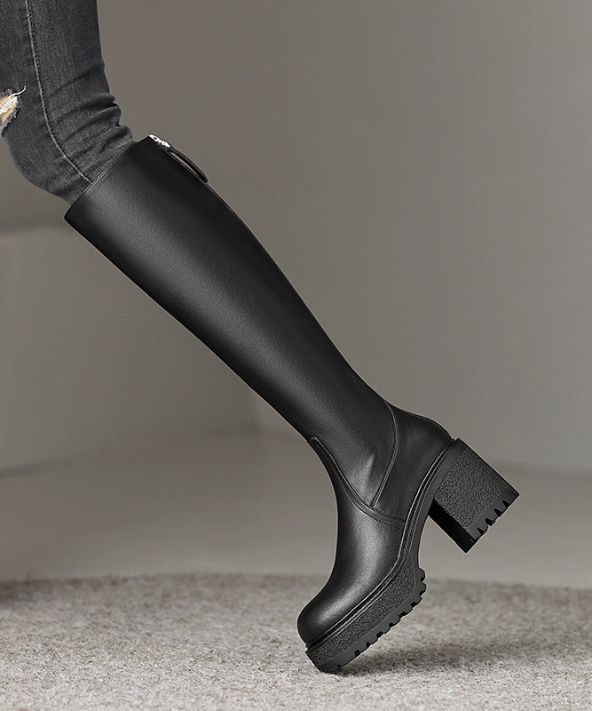 Handmade Splicing Zippered Chunky Heel Boots Brown Cowhide Leather