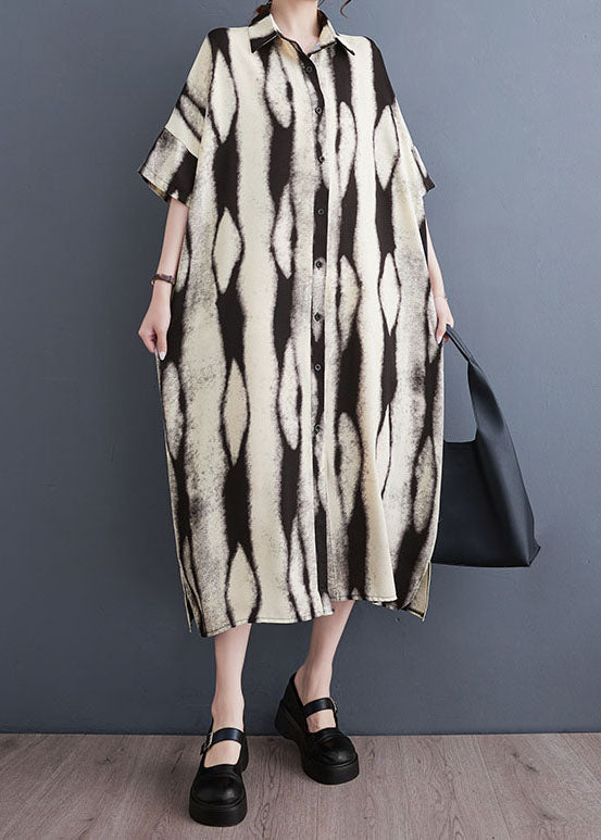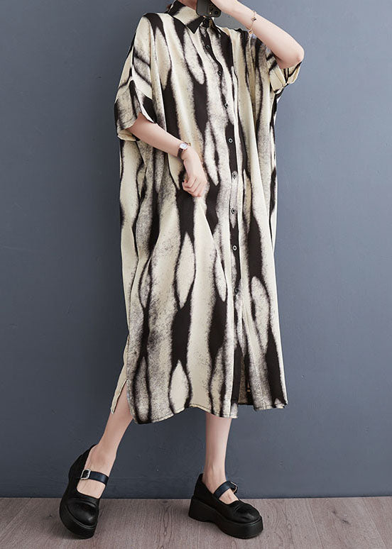 Italian Black Peter Pan Collar Striped Patchwork Silk Shirts Dress Summer